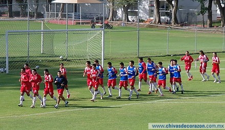 La última sesión de entrenamiento de las Chivas, previa al enfrentamiento contra el conjunto del Pedregal, comenzó en punto de las 10:00 horas con una sencilla entrada en calor al realizar series de frecuencia a lo ancho de la Cancha Dos, estiramientos y ejercicios de movilidad activa. Enseguida, el equipo disputó un divertido ejercicio de futbol en espacio reducido, en el que sólo valía patear el esférico con el perfil que menos dominan, bajo la supervisión del Preparador Físico, Armando Camacho.