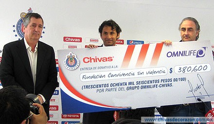 “Los hemos reunido para hacerlos participes en las actividades que en Chivas nos hemos propuesto como prioridad y parte de nuestra filosofía. Estoy entregando la cantidad de 380 mil 600 pesos para la Asociación Civil convivencia Sin Violencia que encabeza Joaquín Quintana para la continuación de sus labores y acciones en pro de un país a la no violencia. Invito a todos los seguidores del Rebaño y a todo el Futbol Mexicano a que manifiesten su apoyo a esta y a otras nobles causas para concientizar a todos los jóvenes de que el futbol, el estudio, y el desarrollo profesional son herramientas que buscan que México sea un país libre de violencia.