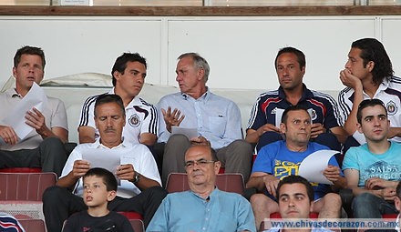 Y es que para el segundo duelo de preparación de Chivas en España, esta vez ante el Unio Esportiva Figueres, el defensa y capitán del Rebaño Héctor Reynoso y el recién incorporado mediocampista Luis Ernesto Pérez, quienes quedaron al margen de la actividad futbolística para dicho encuentro, compartieron el partido junto al responsable del Proyecto Deportivo de Chivas Johan Cruyff, así como con el técnico rojiblanco John van´t Schip el duelo ante Figueres.