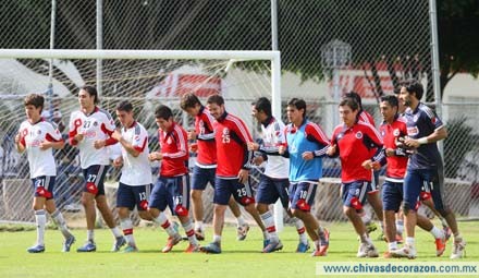 ‪Con la dedicación que exige llegar lo mejor preparado posible al próximo Torneo de Clausura 2013 de la Liga MX, Chivas continuó este viernes con su trabajo de pretemporada al realizar sólo una práctica, en la que realizó ejercicios para mejorar en la posesión del balón, así como una entretenida dinámica de futbol en espacio medio. ‬