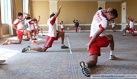En punto de las nueve y media de la mañana, el plantel completo del Guadalajara ingresó a uno de los salones del recinto de concentración en San José para comenzar con ejercicios de estiramientos, labores de recuperación y algunas actividades más de fuerza isométrica bajo las indicaciones de del preparador Físico Daniel Ipata.
