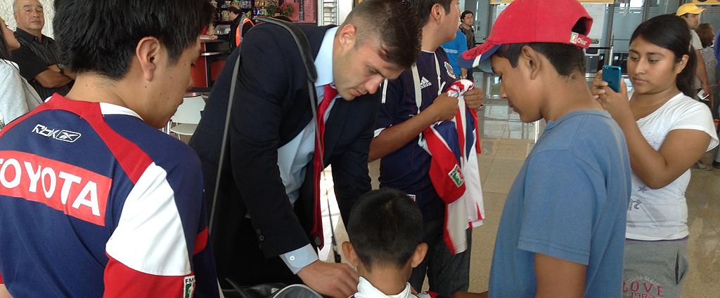 El Rebaño arribó poco después de las tres de la tarde al Aeropuerto Internacional de Puebla Hermanos Serdán y tras recoger su equipaje, los jugadores del equipo rojiblanco aparecieron en la Sala de Llegadas, donde fueron recibidos por medio centenar de entusiastas aficionados, quienes de inmediato los rodearon en busca de un autógrafo y una fotografía con ellos.