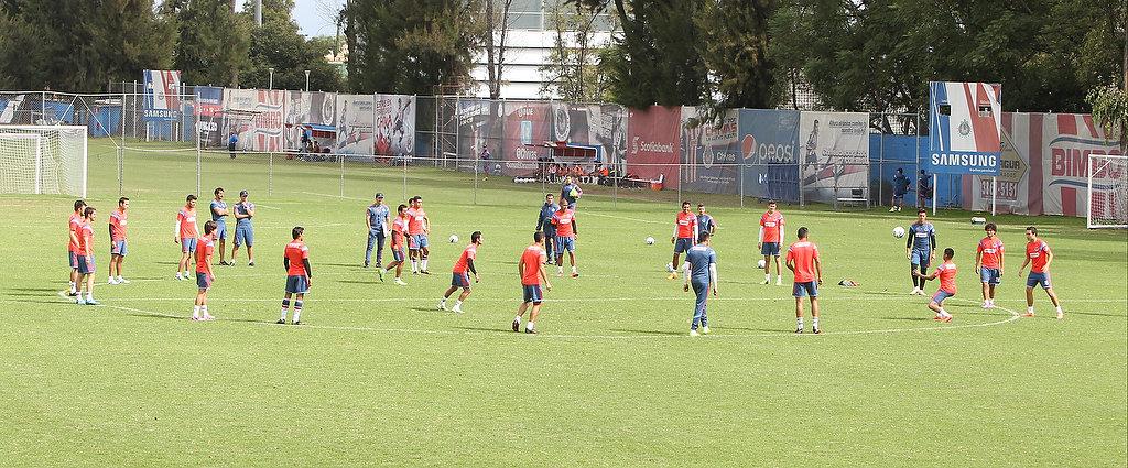 Luego del calentamiento, el estratega rojiblanco José Manuel de la Torre, con el apoyo de su Cuerpo Técnico, dirigió el trabajo futbolístico principal de la práctica de este sábado, el cual consistió en el repaso de las jugadas a balón, enfocado a tener la mejor coordinación en las acciones de este tipo, tanto a la ofensiva como a la defensiva.