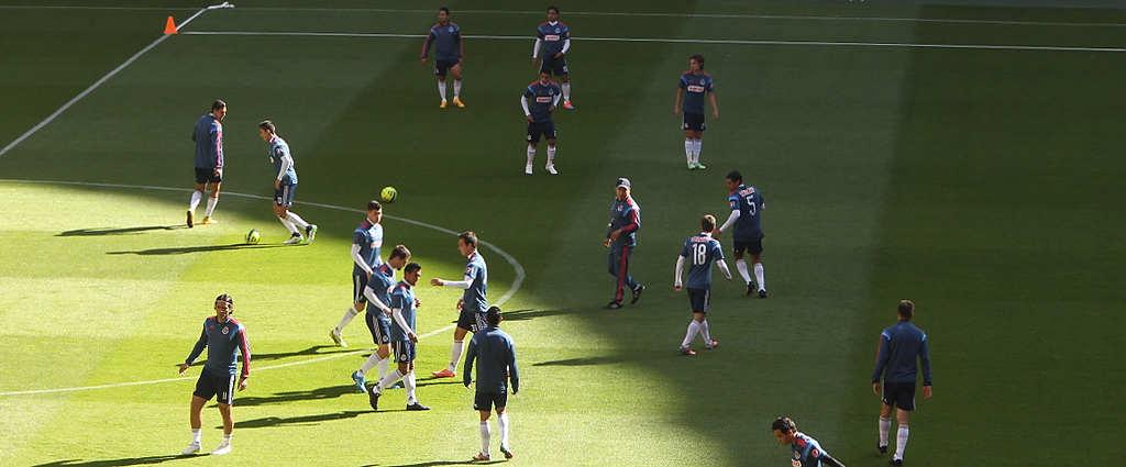 Desde el arranque del entrenamiento la actividad estuvo dirigida hacia el trabajo futbolístico, al calentar los arqueros y los jugadores de campo por separado para estar en óptimas condiciones físicas para realizar el primer ensayo futbolístico con miras al encuentro contra el conjunto felino, correspondiente a la Jornada Dos del Clausura 2015 de la Liga Bancomer MX.