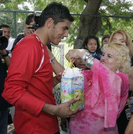 Guadalajara, Jalisco a 21 de Septiembre del 2005.- Este día, el arquero de la Selección Nacional y de las Chivas Rayadas del Guadalajara, Oswaldo Sánchez esta de manteles largos al cumplir 32 primaveras. Sin duda alguna, Oswaldo es hoy por hoy el jugador consentido de la afición rojiblanca y al término de la práctica matutina un grupo de fieles seguidoras le cantaron las mañanitas, le obsequiaron varias cosas y convivieron con el tan querido guardameta quien siempre esta de buen humor para atender a sus fans.