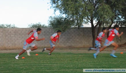 De inmediato. el Preparador Físico Andrés Ornelas, ordenó un corto pero exigente trabajo físico, consistente en estiramientos musculares, trote alrededor de la cancha y tres secuencias de alargues con velocidad que despojaron a los jugadores del viaje hacía la capital de Sonora.